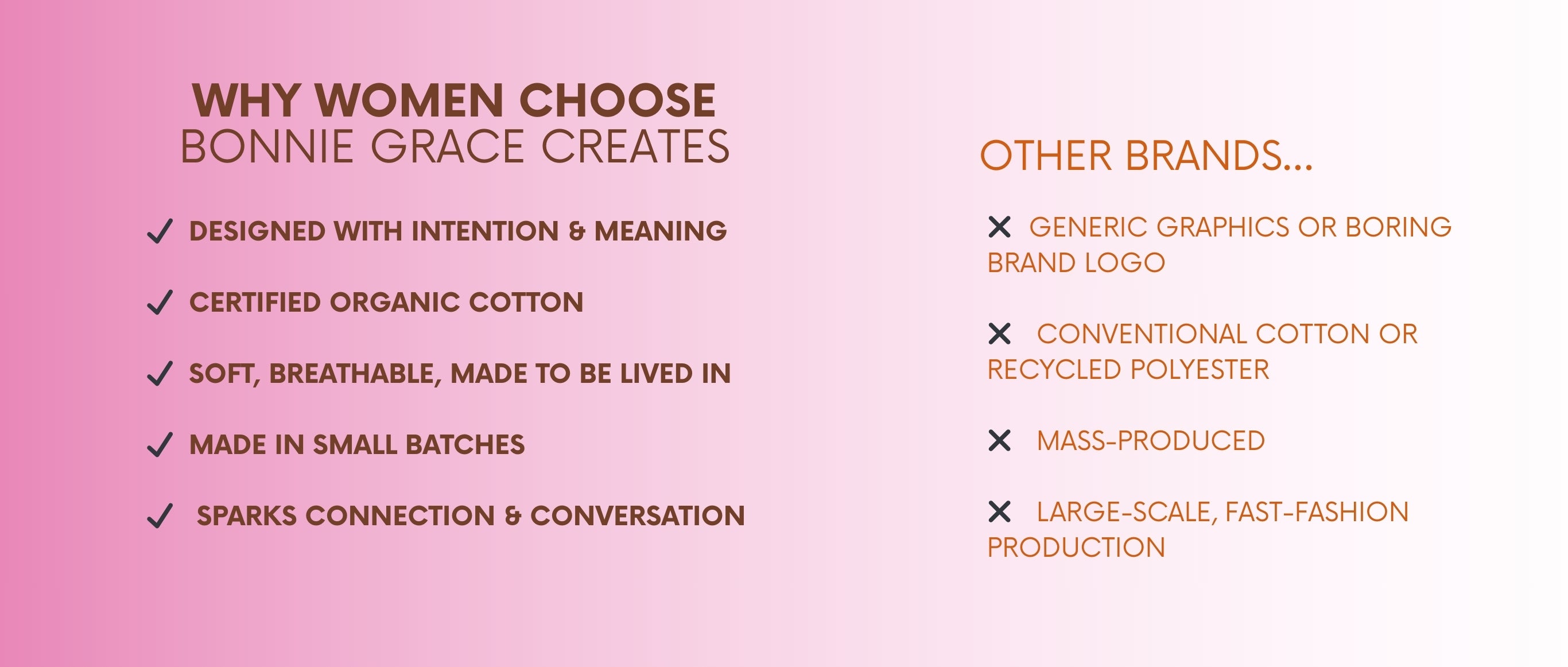 You’re always welcome to email us at info@bonniegracecreates.com or DM on Instagram— we’re happy to help with sizing, styling, or anything else before you place your order.