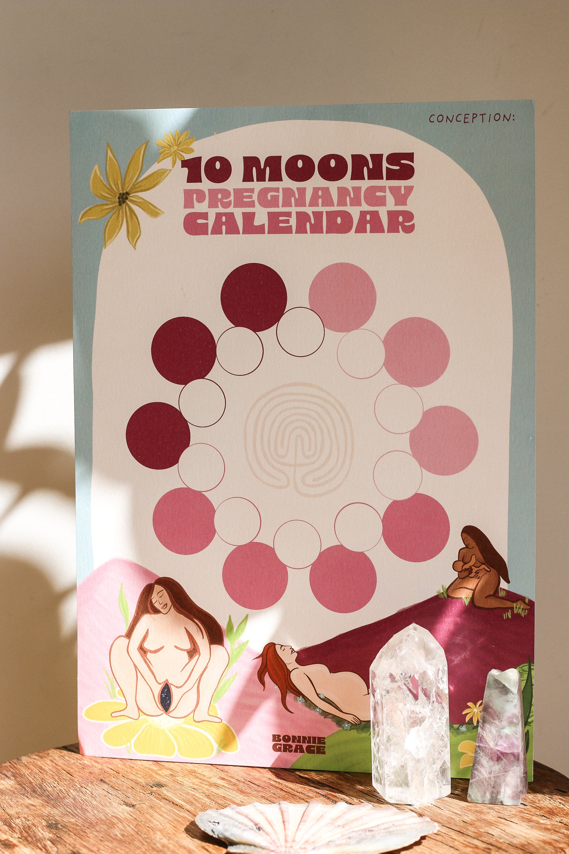 • 10 Moons Calendar - Art Print to track your Pregnancy with the Moons/months.
